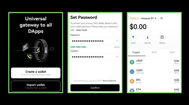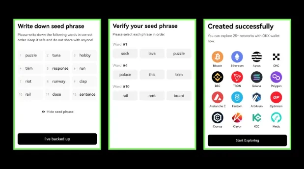 Tải tiện ích mở rộng Web3 OKX hoặc ứng dụng OKX -> chọn ‘Nhập ví’ -> nhập 12 từ hạt giống, tạo mật khẩu bảo mật và bạn đã sẵn sàng truy cập Web3.