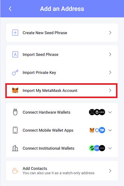 2. Bấm “Import My MetaMask Account”.