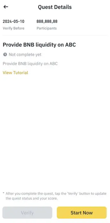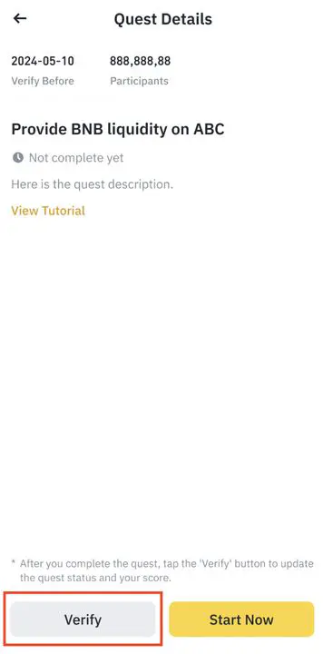 Sau đó, bạn làm theo hướng dẫn để hoàn thành nhiệm vụ. Sau đó, nhấn vào “Verify” trên trang “Quest Details”.