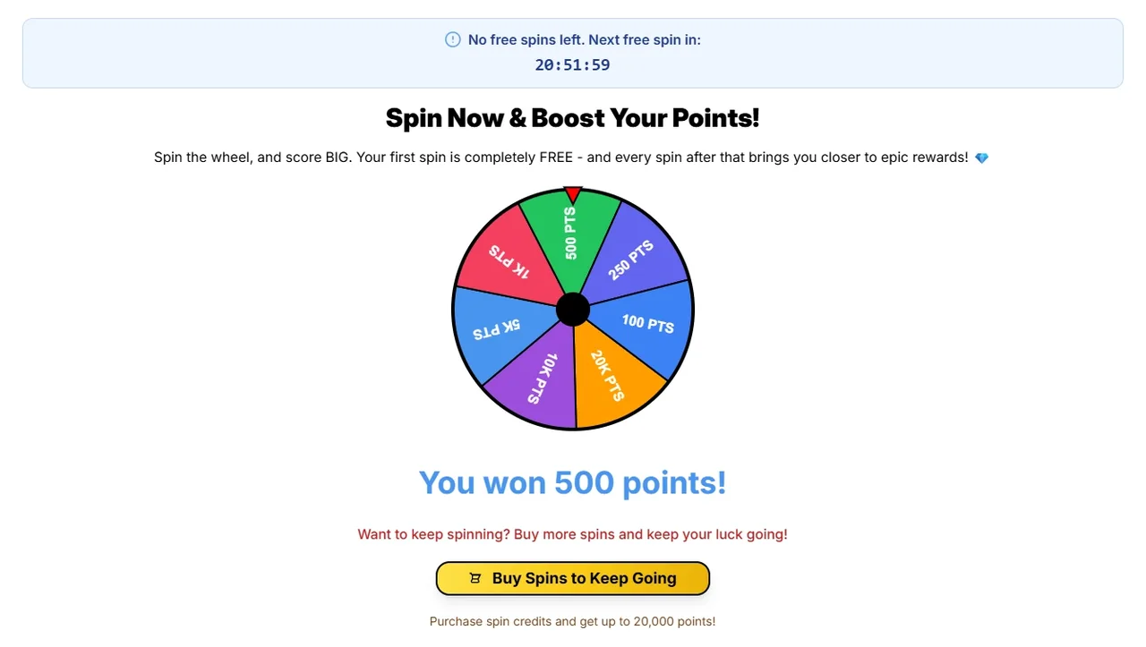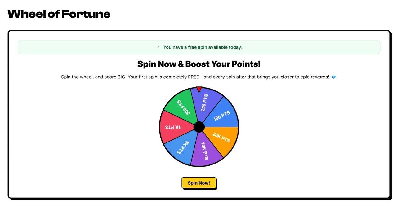 Bước 5: Chơi vòng quay nhận điểm (dự án dành tối đa 20,000 điểm mỗi ngày dành cho cộng đồng nên ae cố gắng nhanh tay canh giờ để quay sớm có slot nhé) -> Click  “Wheel of Fortune” -> “Spin now