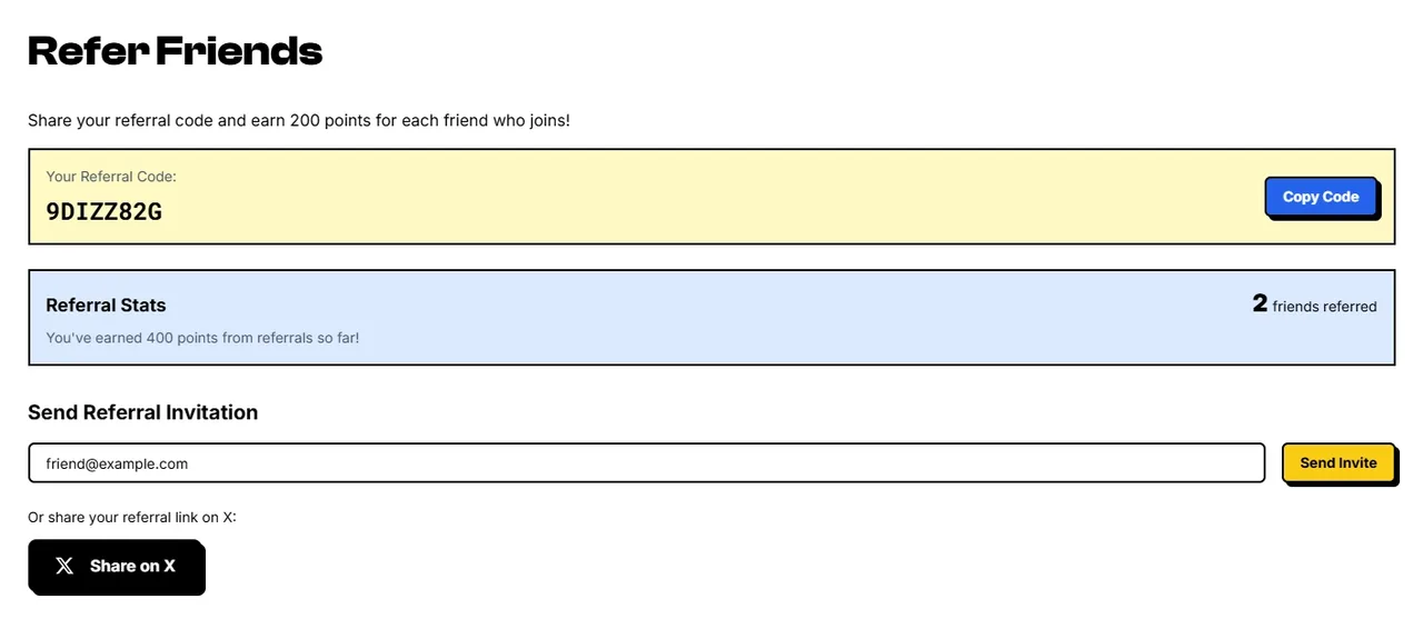 Bước 6: Sao chép mã mời, link độc quyền và giới thiệu cho người dùng khác (bạn sẽ kiếm được 200 điểm với mỗi người mời thành công)