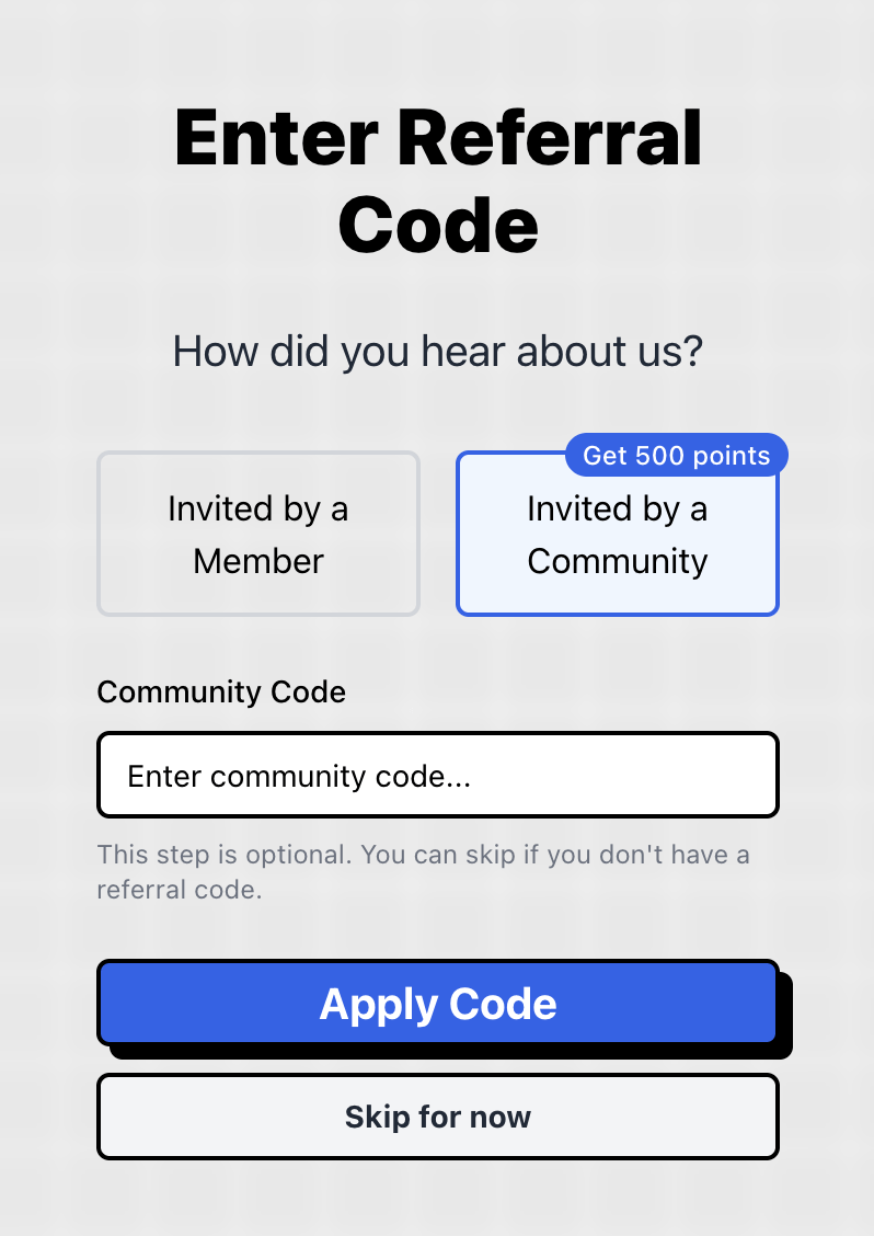 Bước 2: Click “Invited by a Member” -> Nhập mã 19881CB6 để nhận 100 điểm đầu tiên