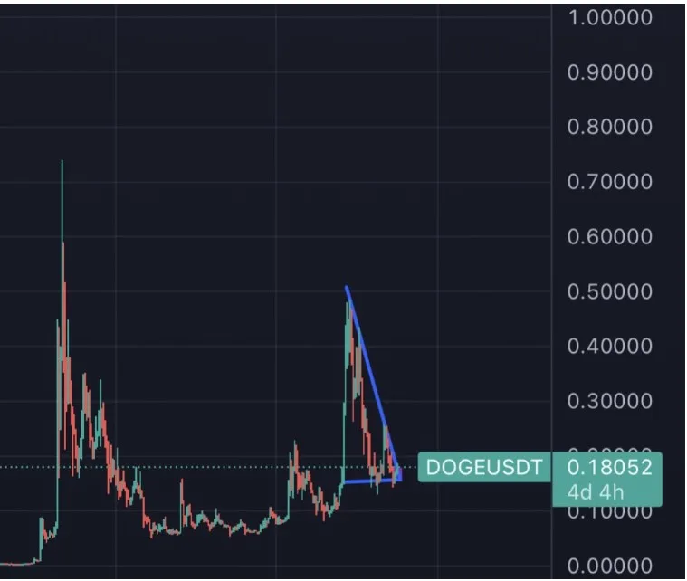Lướt qua nền tảng X cho thấy các nhà quan sát thị trường ngày càng lạc quan về khả năng Dogecoin sẽ bứt phá lên mức 1 USD. Một trong số đó là người dùng có tên Woof, người đã chia sẻ biểu đồ cho thấy DOGE đang ở trong xu hướng giảm dần — một mô hình thường báo hiệu khả năng sắp xảy ra đột phá giá.