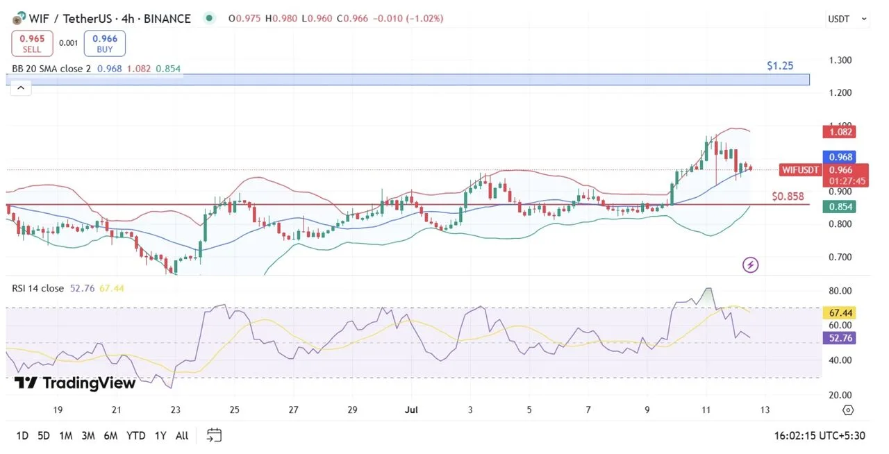 Về mặt kỹ thuật, WIF đang nằm ngay trên dải Bollinger Band giữa ở mức 0,968 đô la, cho thấy giá đang ổn định trước khi có thể tăng mạnh trở lại. Sự kết hợp với các chủ đề NFT và game đang thịnh hành mang lại tiềm năng lan truyền mạnh mẽ, và bất kỳ động thái xã hội lớn nào cũng có thể nhanh chóng khơi dậy đà tăng trưởng. Rủi ro giảm giá thận trọng đặt WIF ở mức 0,85 đô la, với phạm vi trung bình quanh 1,25 đô la. Nếu cơn sốt meme coin quay trở lại, việc tăng lên 2,50 đô la là điều hoàn toàn có thể.