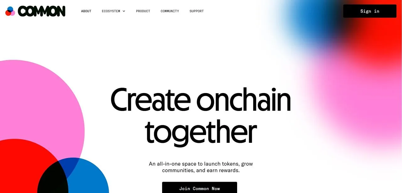 Common là một không gian trọn gói để phát hành token, phát triển cộng đồng và kiếm phần thưởng.