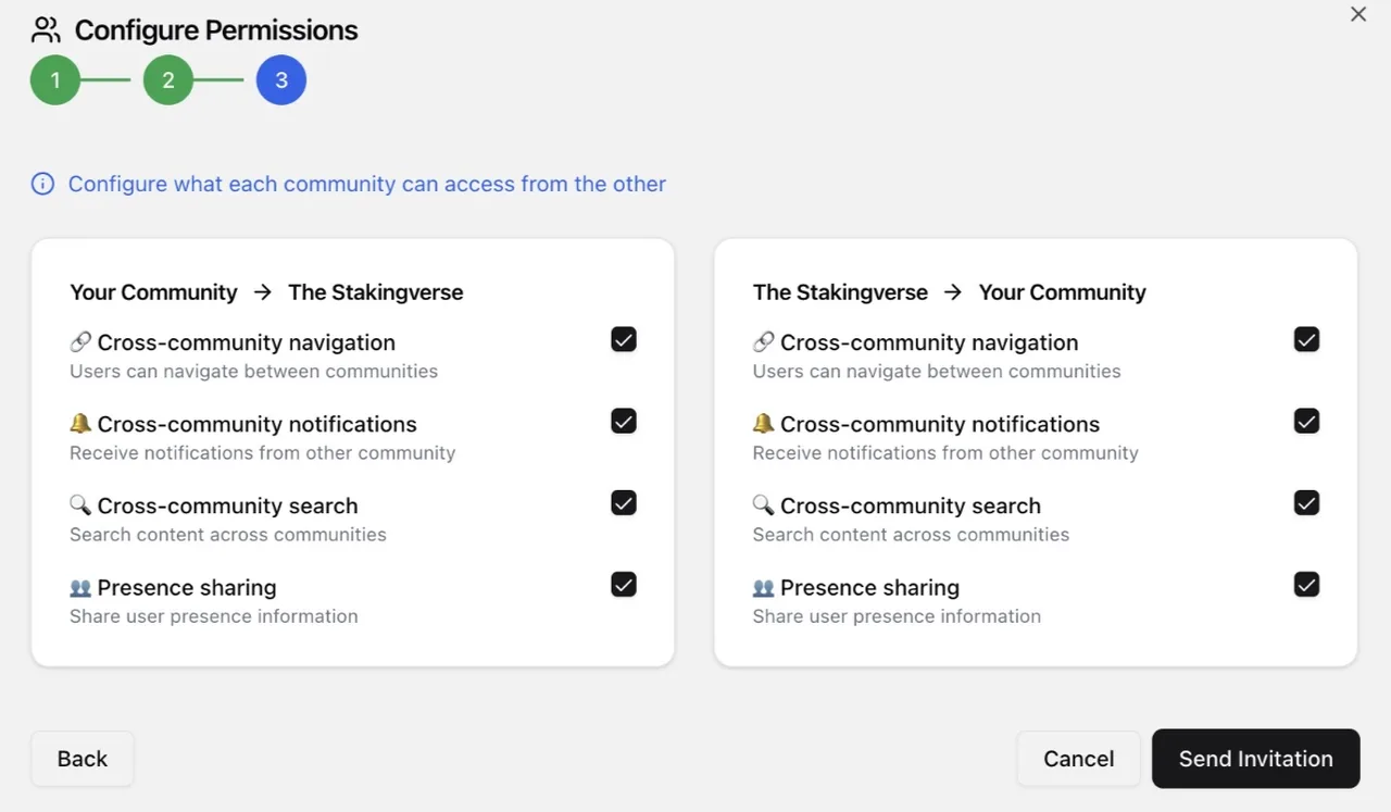 Cộng đồng có thể giới hạn tương tác bằng cổng token, cho phép xác thực hoạt động cả on-chain và off-chain.