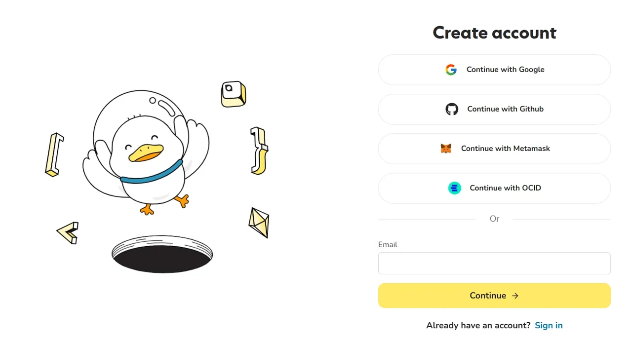 Bước 1: Truy cập vào trang web https://www.hackquest.io/-> Click “Sign up” và đăng ký tài khoản