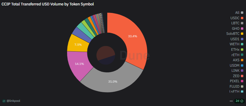 Giai đoạn tăng giá của LINK trùng với đỉnh cao giao dịch trong năm. Giao thức CCIP (Cross-Chain Interoperability Protocol) của Chainlink ghi nhận nhu cầu mạnh mẽ cho chuyển tài sản đa chuỗi, đặc biệt là stablecoin USDC và LBTC.