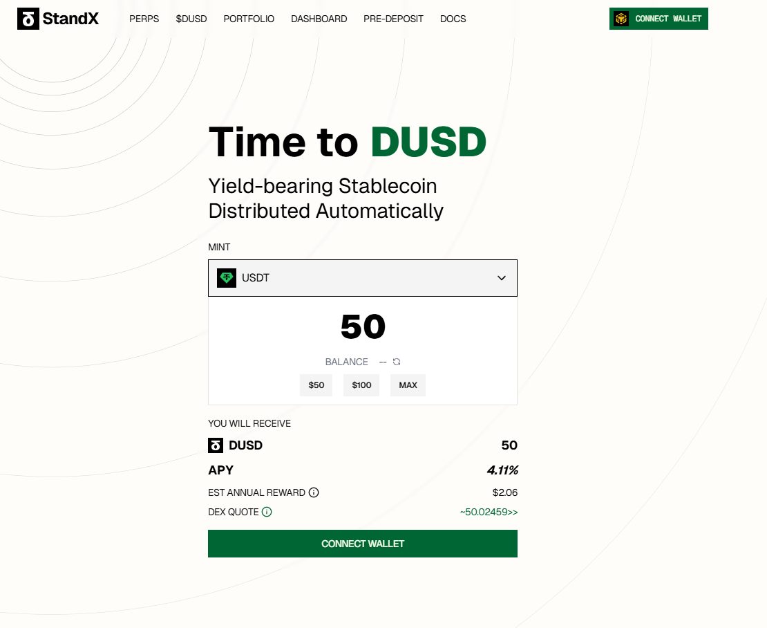 StandX là Perps DEX thế hệ mới trên BNB Chain, tích hợp stablecoin sinh lời DUSD cho phép người dùng vừa giao dịch vừa nhận lợi suất on-chain.